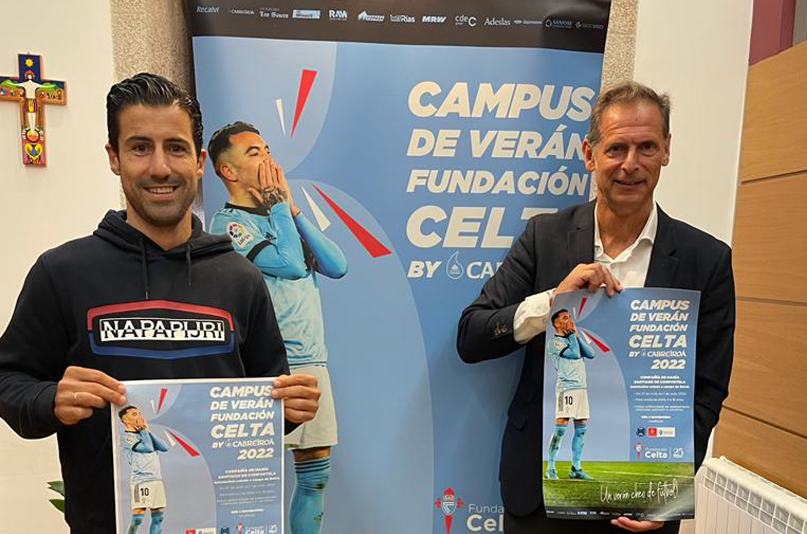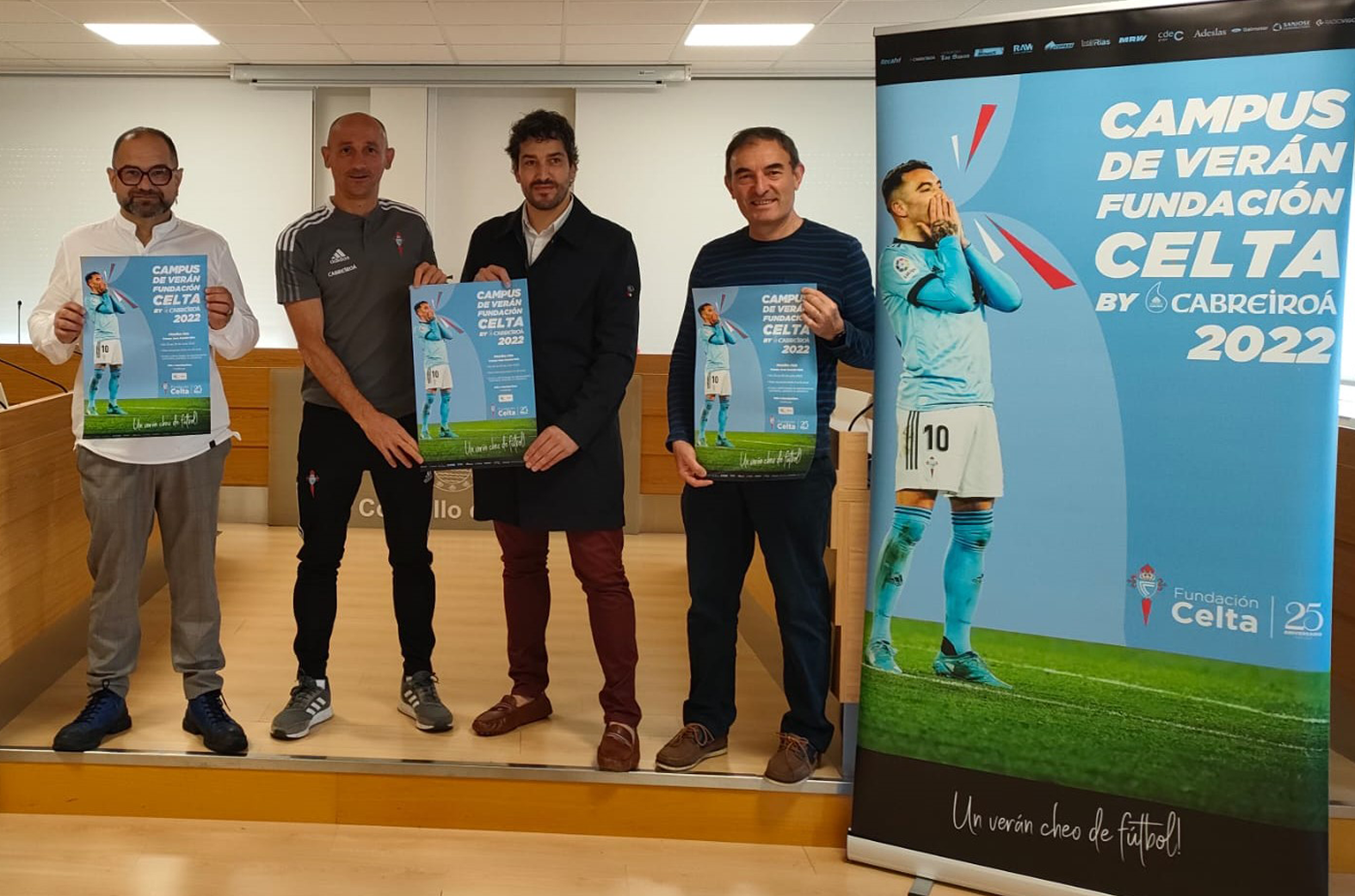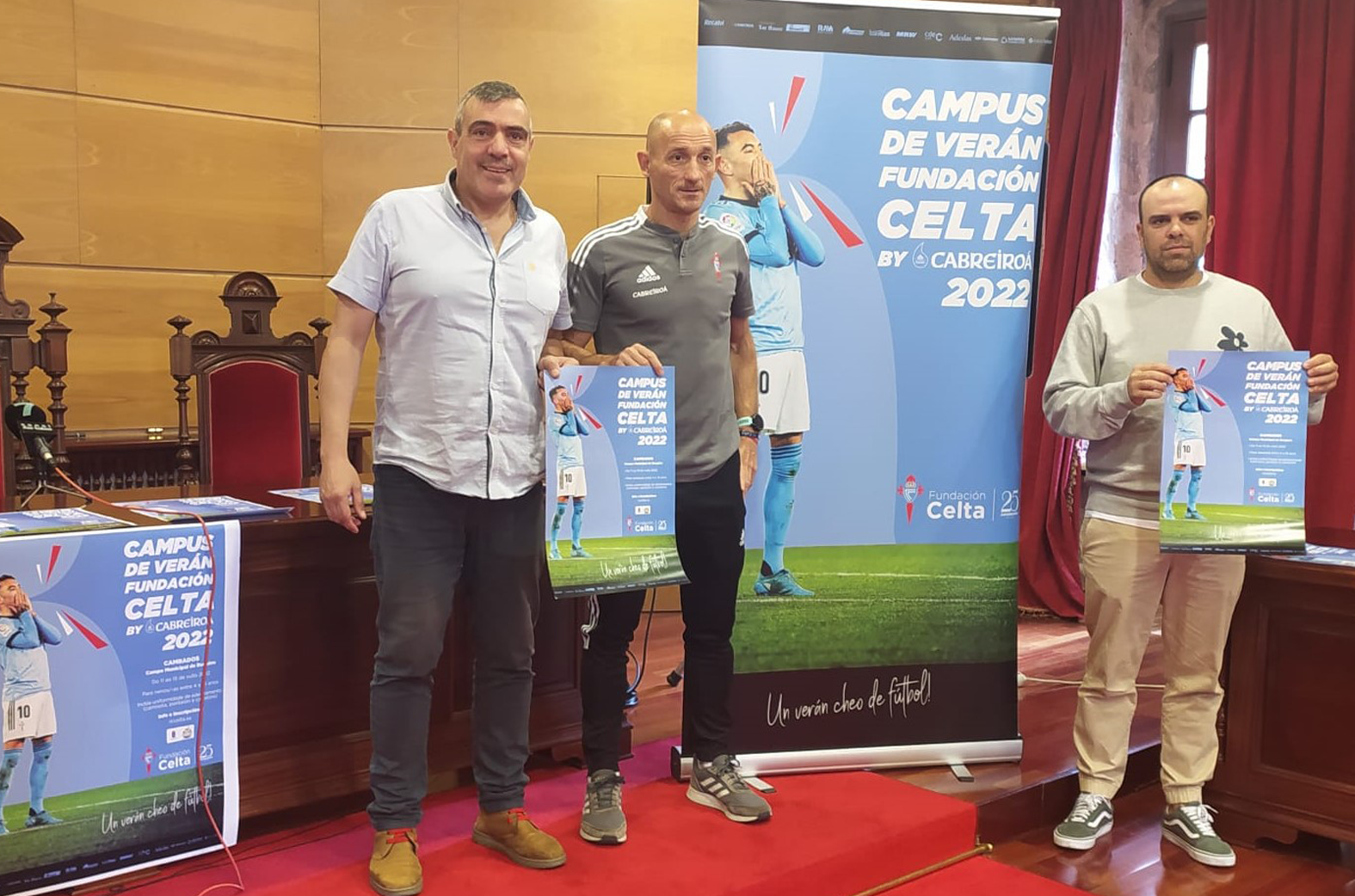 El martes en Ourense se celebró la presentación de todos los actos relacionados con la celebración del 50 aniversario del Pabellón CF, entre los cuales se incluye el campus verano de la FUNDACION CELTA BY CABREIROÁ que se llevará a cabo 2 semanas (la última de junio y la primera de julio) en las instalación de Os Remedios. Espectacular presentación y gran variedad de actos que conmemorarán este aniversario como bien se lo merece un club de referencia en el futbol base gallego que lleva años manteniendo estrechas relaciones con el RC Celta. Por la Fundación celta estuvo presente Diego Sarabia que acompañó al alcalde de Ourense, al presidente de la diputación de Ourense y al presidente el Pabellón CF, Paco Doforno.