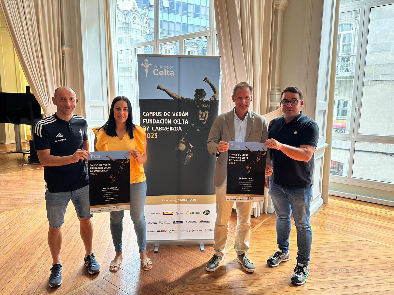 Germán Arteta director de la Fundación y Manu Gómez coordinador del campus en la presentación de la sede Xinzo de Limia con la concejala de deportes Cristina Campero y el técnico de deportes David Carnero