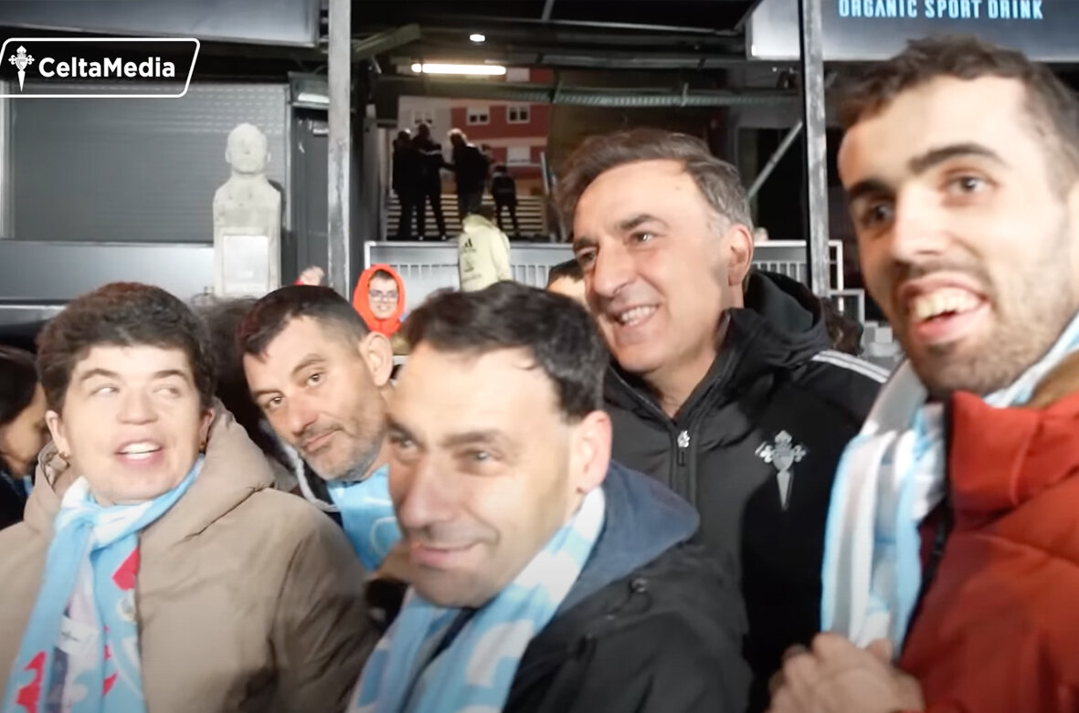A expedición, composta por 55 integrantes, presenciou o quecemento a pé de campo e foi saudada polo noso adestrador Carlos Carvalhal.