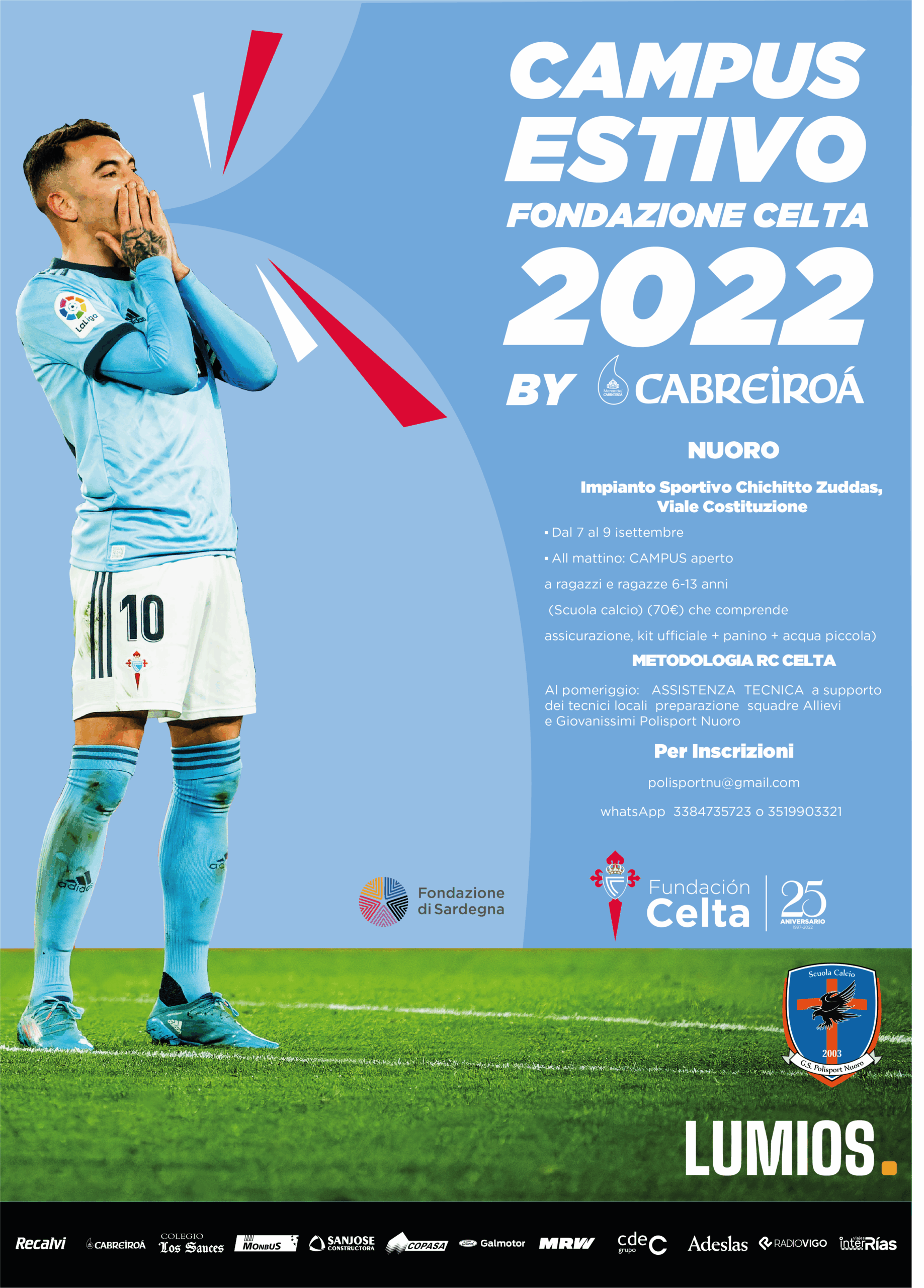 Grazas á colaboración do club local ASD Scuola Calcio Polisport Nuoro e da empresa Lumios HP Sport Services, achegáronse os valores do deporte e a forma de traballar do RC Celta aos máis pequenos ao longo de 3 intensas xornadas, que se complementaron con asesoramento. aos técnicos do club local polos técnicos desprazados da Academia Celta.