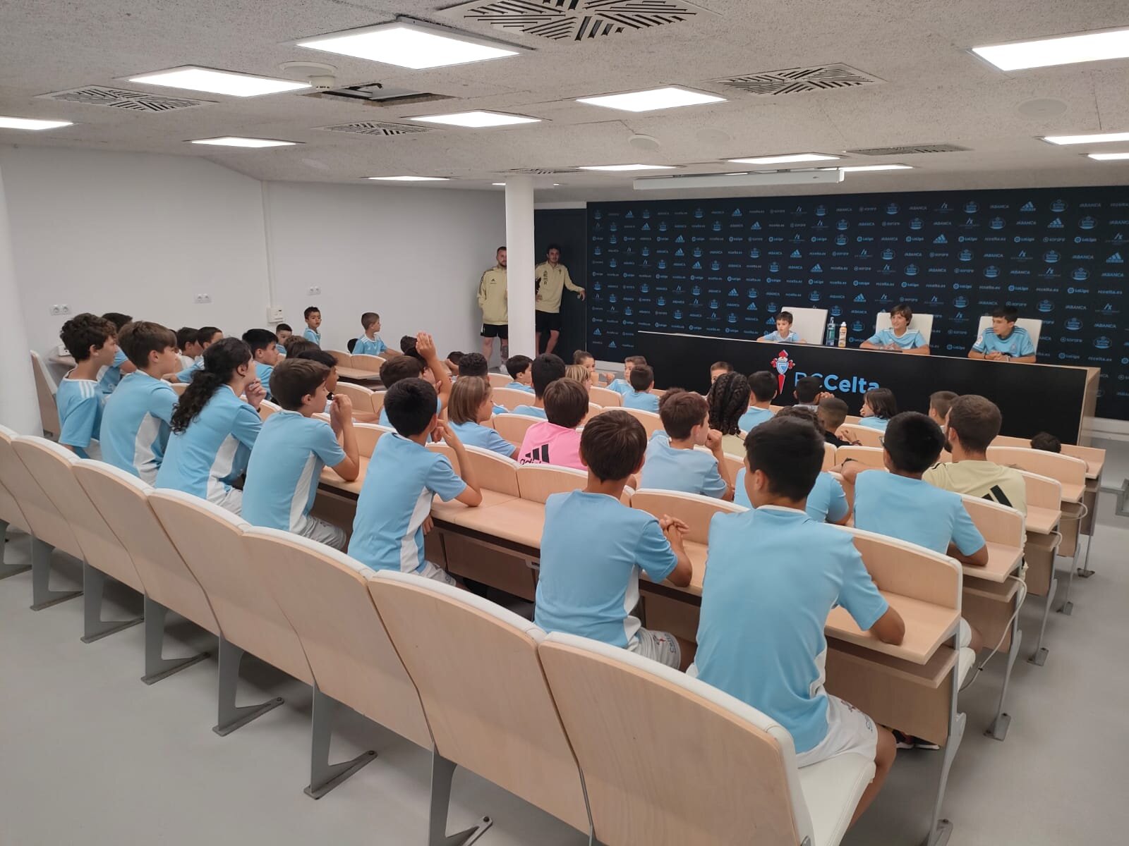 Por unha banda realizaron unha visita guiada ao estadio ABANCA BALAÍDOS onde puideron coñecer todas as zonas interiores onde os seus ídolos do primeiro equipo compiten cada fin de semana como locais na principal competición do futbol español: terreo de xogo, banquillos, túnel de vestiario, vestiarios, sala de prensa,…Por uns momentos puideron imaxinarse futuros xogadores nas diferentes estancias.