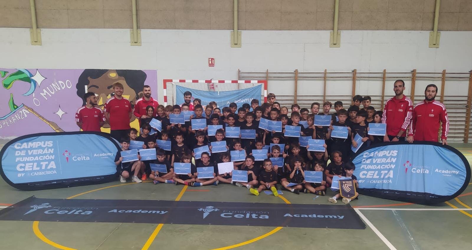 Finaliza a primeira semana de Campus de verán Fundación Celta by Cabreiroá 2023 nas súas sedes de A Madroa, Pabellón Ourense, Colexio Compañía de María de Santiago de Compostela, Oroso e Colexio Los Sauces Pontevedra, con gran éxito de satisfacción por parte de todos os participantes e familiares, tanto polas aprendizaxes deportivas como polos grandes momentos de entretemento xunto a novos amigos.