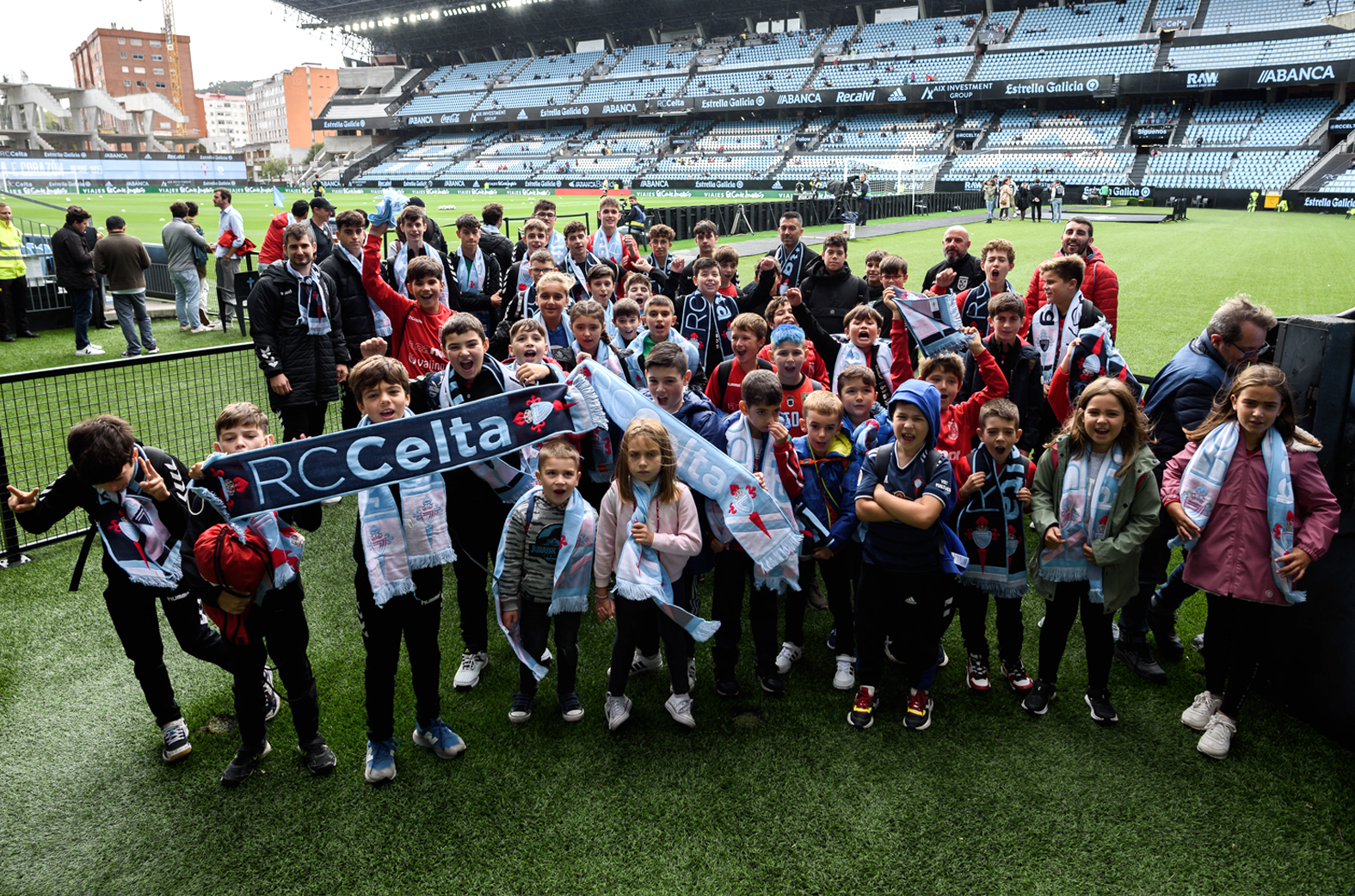 Cincuenta e cinco rapaces do Concello do Rosal e do Club Balonmán Valinox Novas visitaron este domingo o estadio Abanca Balaídos e asistiron ao partido ante a Real Sociedade no marco do programa ‘Eurorrexión Celeste‘.