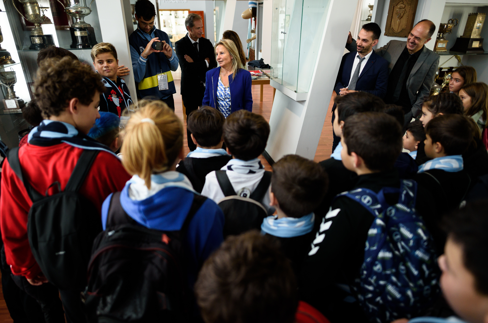 A expedición visitou o Museo onde recibiron os saúdos da conselleira Dª. María José Táboas e Germán Arteta, director da Fundación Celta de Vigo, e presenciou o quecemento dos equipos antes do partido.