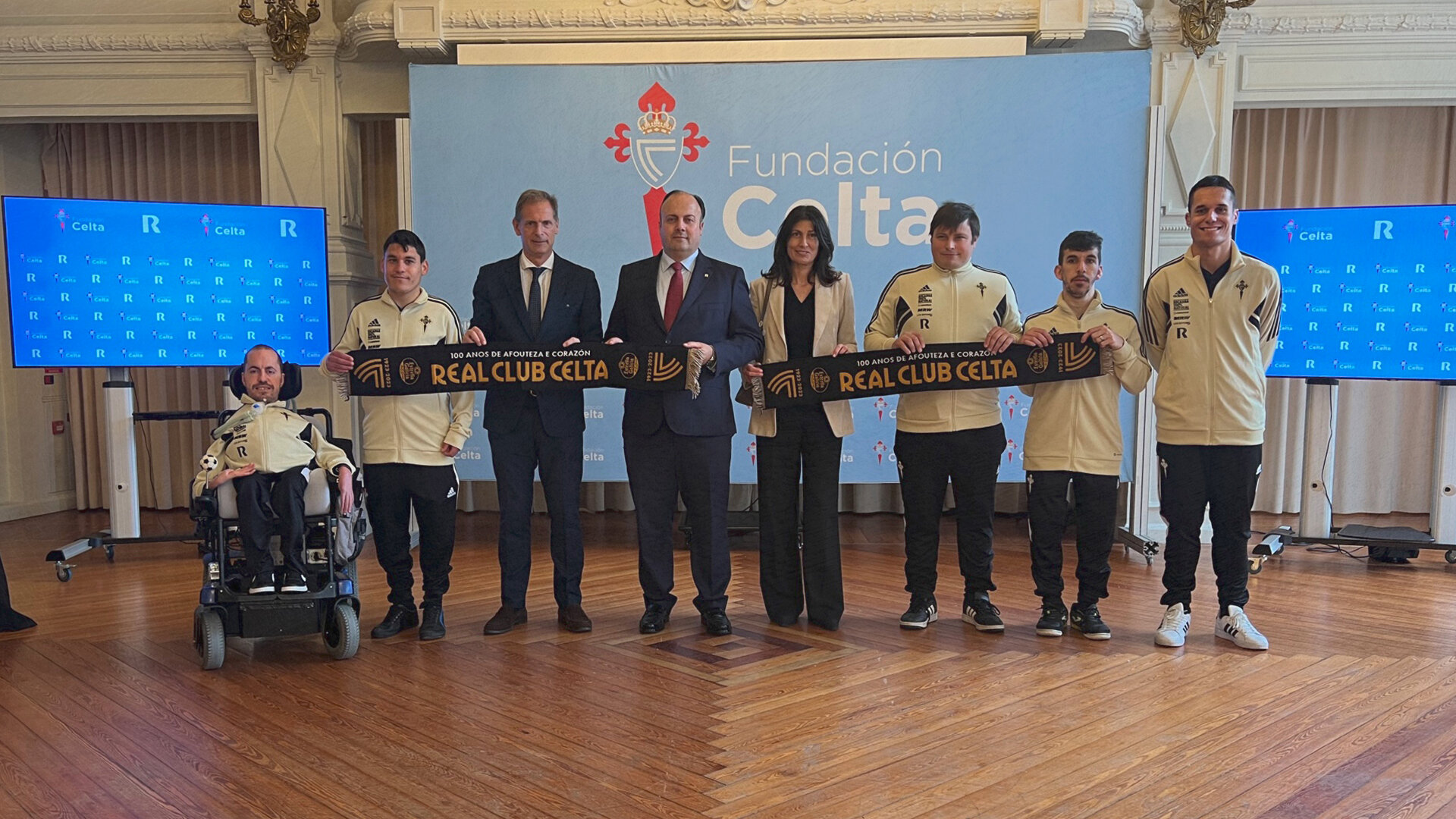 O director da Fundación Celta, Germán Arteta e o director de R, Alfredo Ramos, posaron esta mañá xunto a membros do equipo e do corpo técnico do conxunto Celta Integra no Salón Rexio da sede do R.C.Celta en Vigo, para pór en escena o novo acordo de patrocinio rubricado polo operador galego e a entidade olívica. Así, R volve patrocinar oficialmente o Celta Integra, que xoga en LaLiga Genuine, competición de equipos formados por persoas do colectivo D.I (con discapacidade intelectual) e organizada por LaLiga.