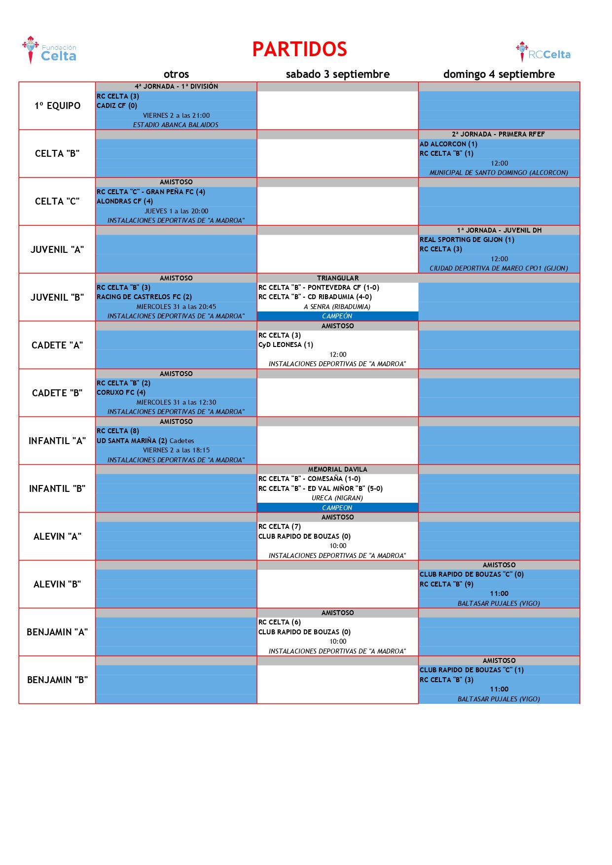 Resultados da canteira do RC Celta (3 e 4 de setembro)