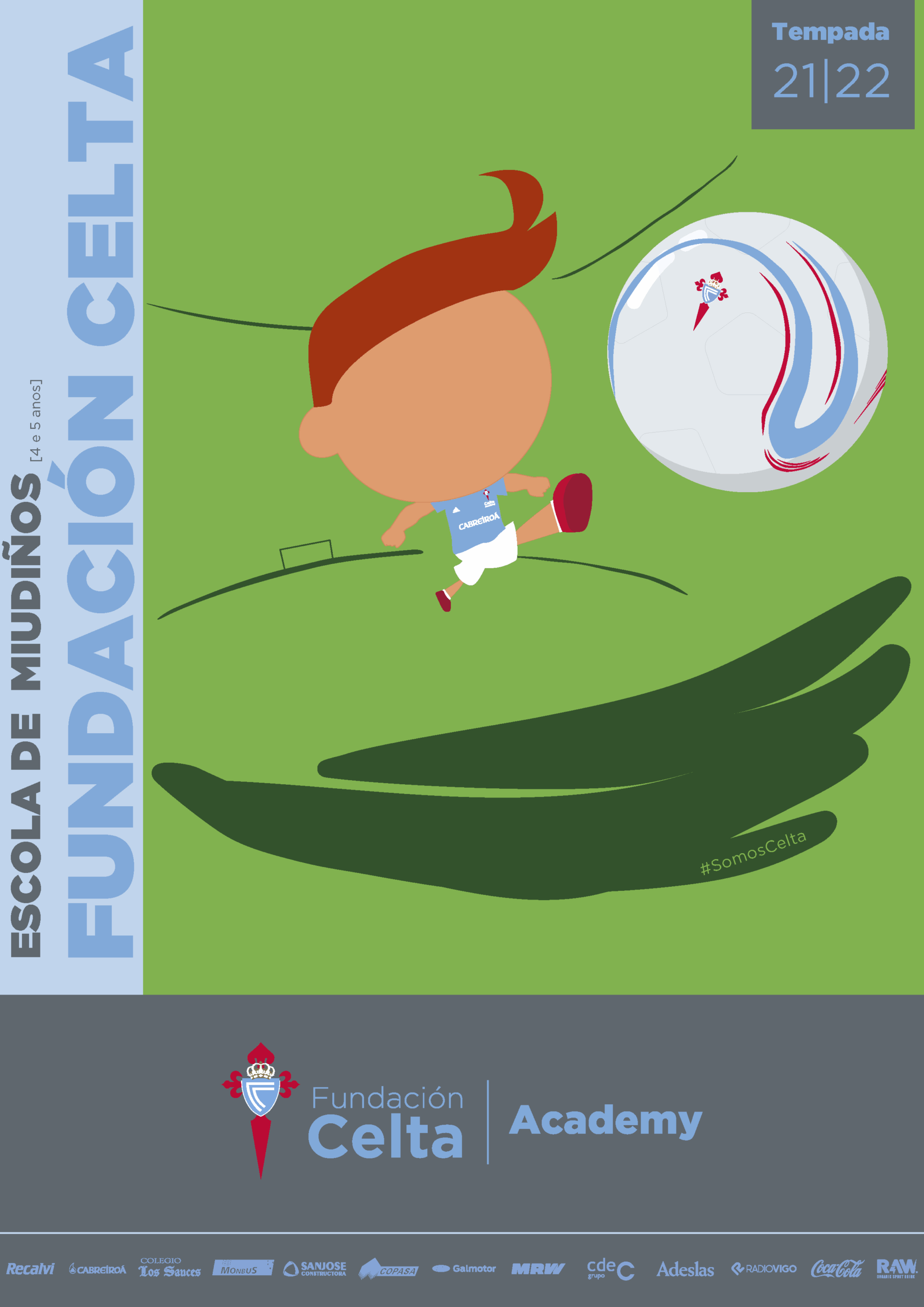 Desde este novo curso 2021-2022 teremos unha Escola de Fútbol específica para os máis pequenos, para todos os celtistas que queren empezar a dar as súas primeiras patadas ao balón da man do RC Celta. Son os nosos MIUDIÑOS e queremos que formen parte do noso gran club desde tan pequenos: para nenos/ as nados en 2016 ou 2017.