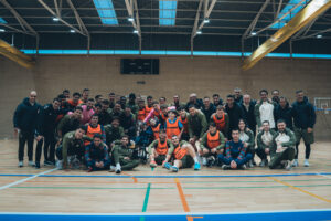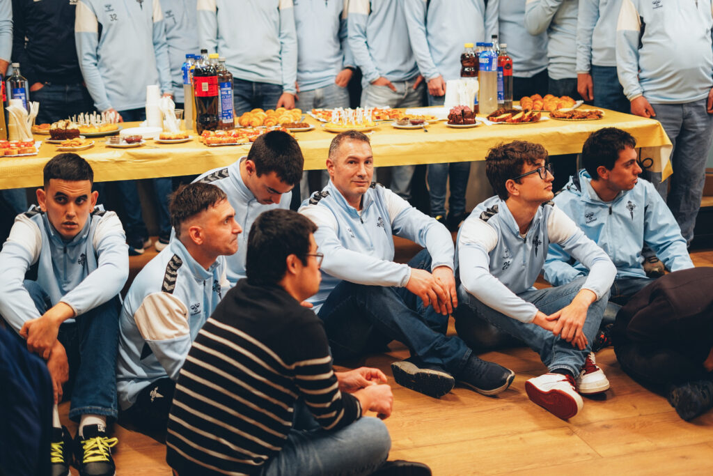 En este contexto tuvo lugar una visita muy especial. El equipo del Celta Integra Zelnova, acompañado por su coordinador y cuerpo técnico, acudió al local para compartir una merienda junto a Samu, antiguo jugador del equipo y hoy integrante del equipo de Diversum.